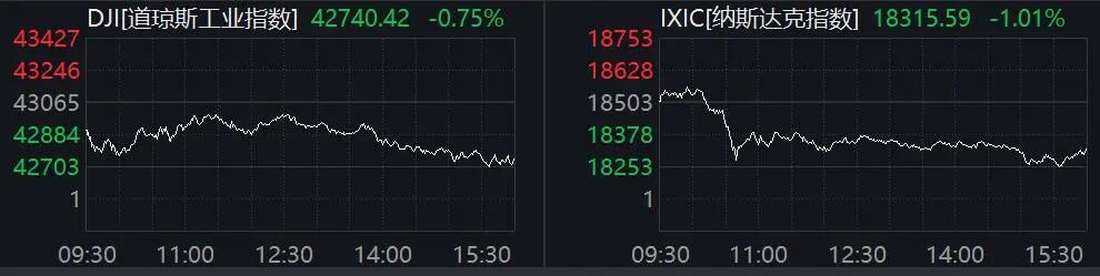 美股三大指数集体收跌,纳指跌1.01%,标普500指数跌0.76%,道指跌0.75%。以色列将避免打击伊朗原油目标的消息令油价大跌。多位美联储官员将在今天发表讲话。