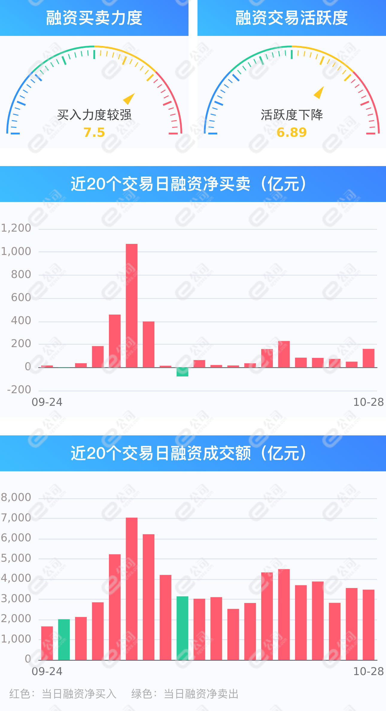 证券时报e公司讯,截至10月28日,上交所融资余额报8668.26亿元,较前一交易日增加68.49亿元;深交所融资余额报8010.88亿元,较前一交易日增加92.84亿元;两市合计16679.13亿元,较前一交易日增加161.32亿元,融资交易额3475.28亿元,占A股成交额18.66%,其中融资买入额1818.30亿元,融资偿还额1656.98亿元,交易活跃度下降2.25%。统计发现,融资客保持连续11日净买入,合计978.92亿元。(此稿由证券时报e公司写稿机器人“快手小e”完成。)