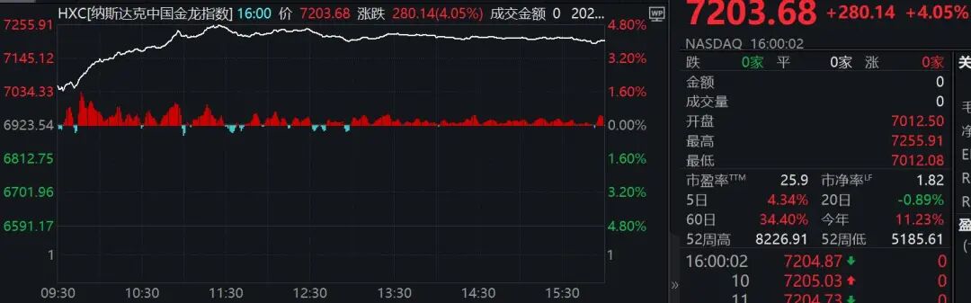 昨夜,热门中概股普遍上涨,纳斯达克中国金龙指数更是收涨4.05%,为10月15日来的最高水平。