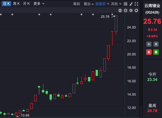 9月23日至11月5日,云南锗业股价累计涨幅达135.25%。消息面上,锗产品价格上涨是主因。