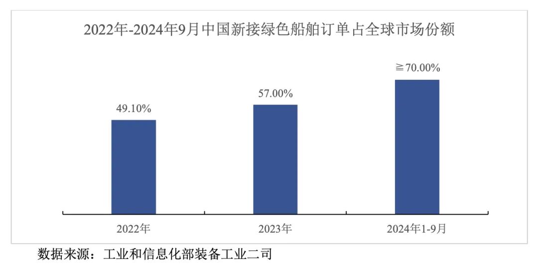 根据工业和信息化部装备工业二司数据,2023年,造船业三大核心指标全球造船完工量为 8425万载重吨,新接订单量为10691万载重吨,手持订单量为25362万载重吨,分别同比增长5.17%、29.73%和17.61%,全球造船业保持景气上行趋势;中国三大核心指标占比分别为 50.2%、66.6%和50%,市场份额稳居世界第一。