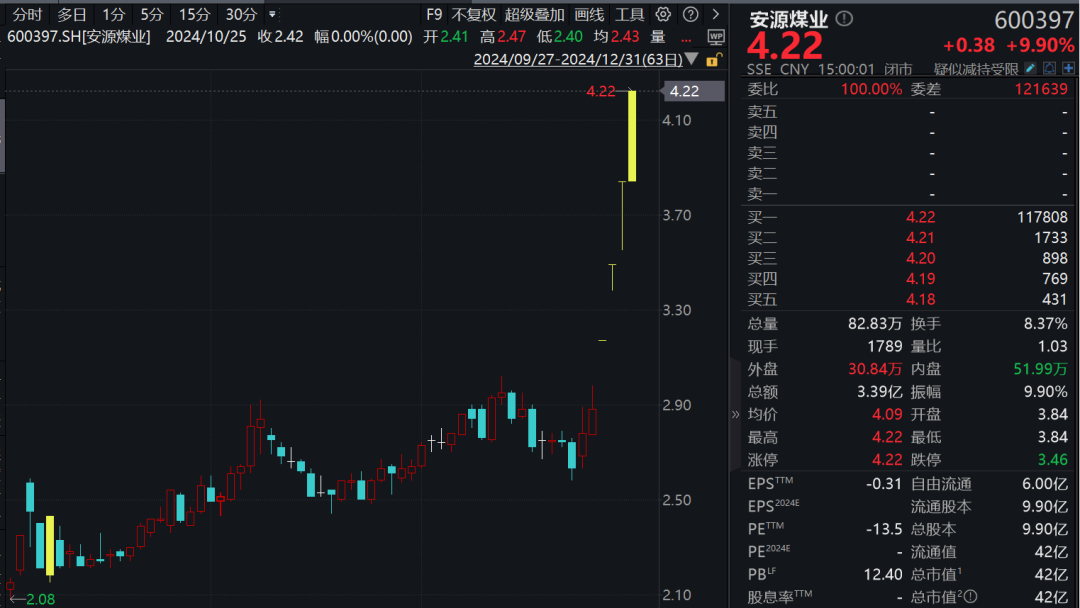 煤炭股也有不俗表现,安源煤业连续第4日涨停,股价创2年半多新高。宝泰隆连续2日涨停,陕西黑猫、中国神华、安泰集团等均逆势飘红。