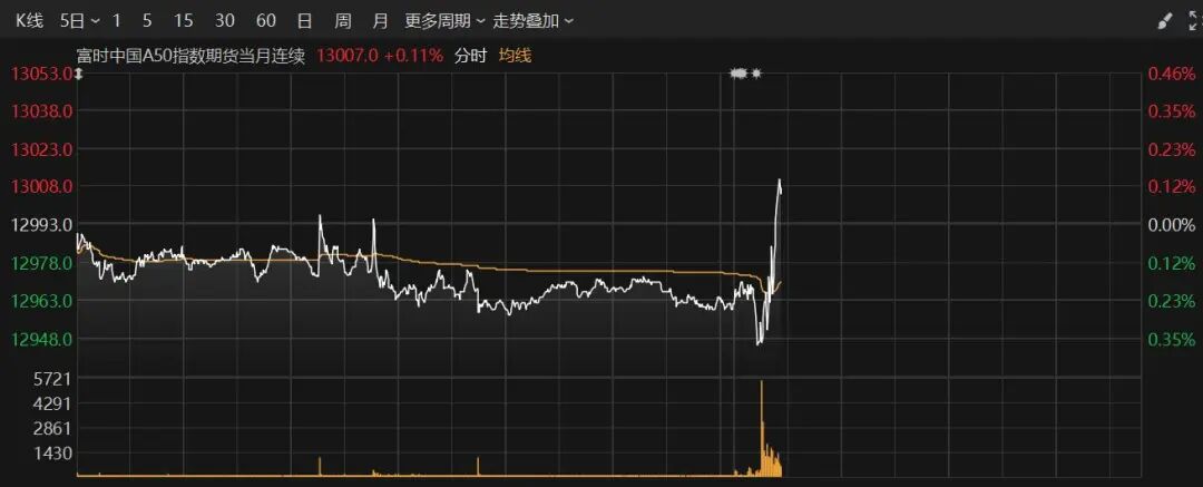 富时中国A50指数期货盘中直线拉升翻红。旅游股异动,张家界直线拉升涨停。