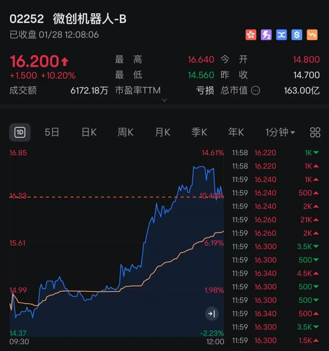 消息面上,微创机器人近期披露公司综合订单量累计突破100台,其中2024年图迈机器人全球订单达39台,商业化装机突破30台,全球累计商业化订单近60台,国际化业务实现较快增长。