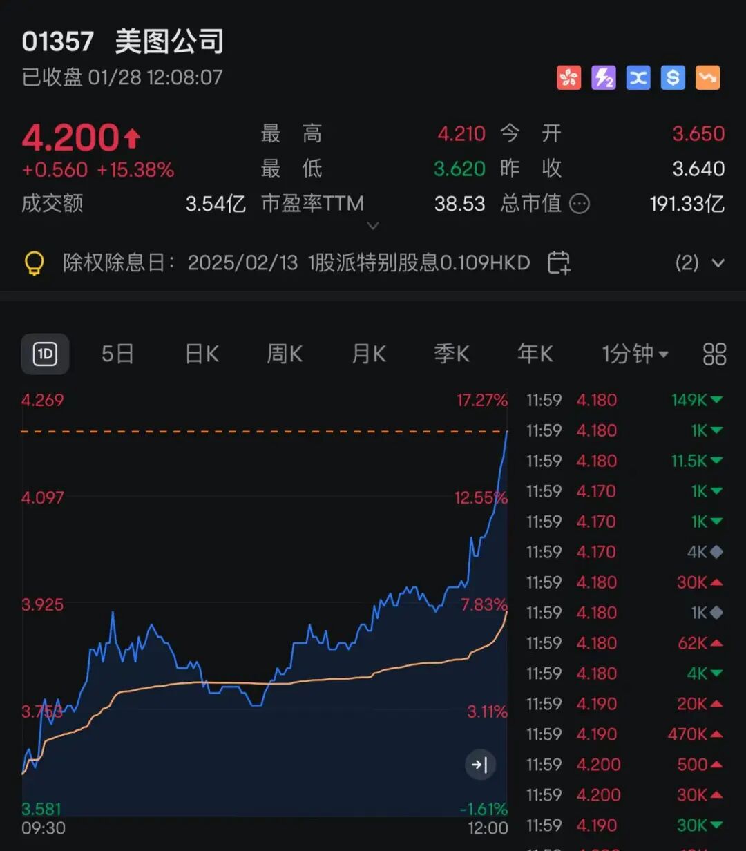 金山软件、美图公司、百度集团-SW分别上涨5.82%、15.38%、3.6%。