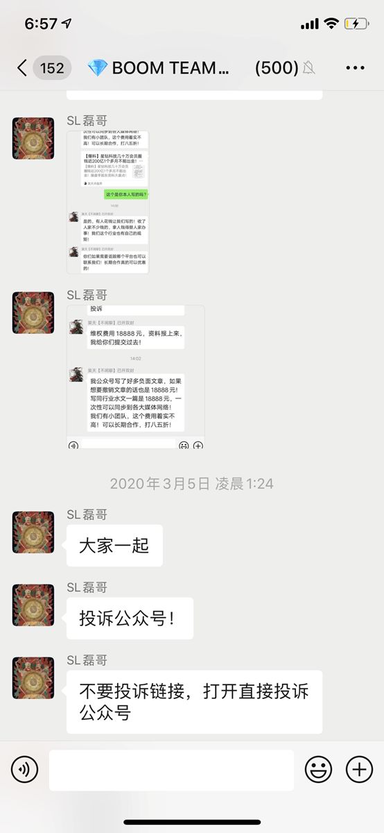 2、栽赃诬陷自媒体,号召群友投诉正常报道真相的公众号。