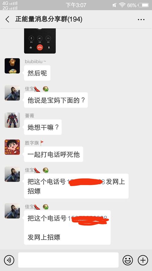 “我是最早一批受到维稳团队攻击的,一月份我的真实名字和手机号不慎暴露,从此再无宁日,包括被微信名为‘胜子旗’的维稳者用购买的电话骚扰软件‘呼死你’日夜不停呼叫;被人用手机号注册各种小贷平台,不停收到验证短信;更被佳宝把姓名和手机号编辑成招嫖信息在网络空间散播,接到相关电话和短信咨询;真实姓名也不时被维稳分子拿出来谩骂侮辱,谩骂范围包括我的家人,不堪入目。”一名维权的投资者心有余悸地告诉记者。“记者,我跟你说心里话,他们怎么骚扰我、辱骂我,我都无所谓,但是一想到他们把我闺女照片暴露出来各个群里传,我现在眼泪还止不住流。”