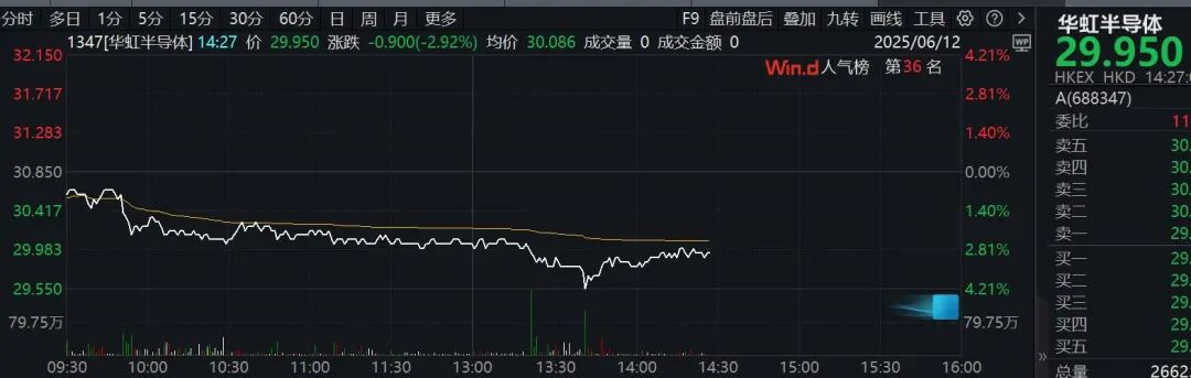港股半导体股午后持续走低,宏光半导体、华虹半导体跌超3%,英诺赛科、上海复旦、中芯国际跌超2%。