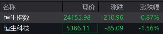 午后港股走低,恒指跌幅一度扩大至1%,现跌幅有所收窄,恒生科技指数跌超1.5%。
