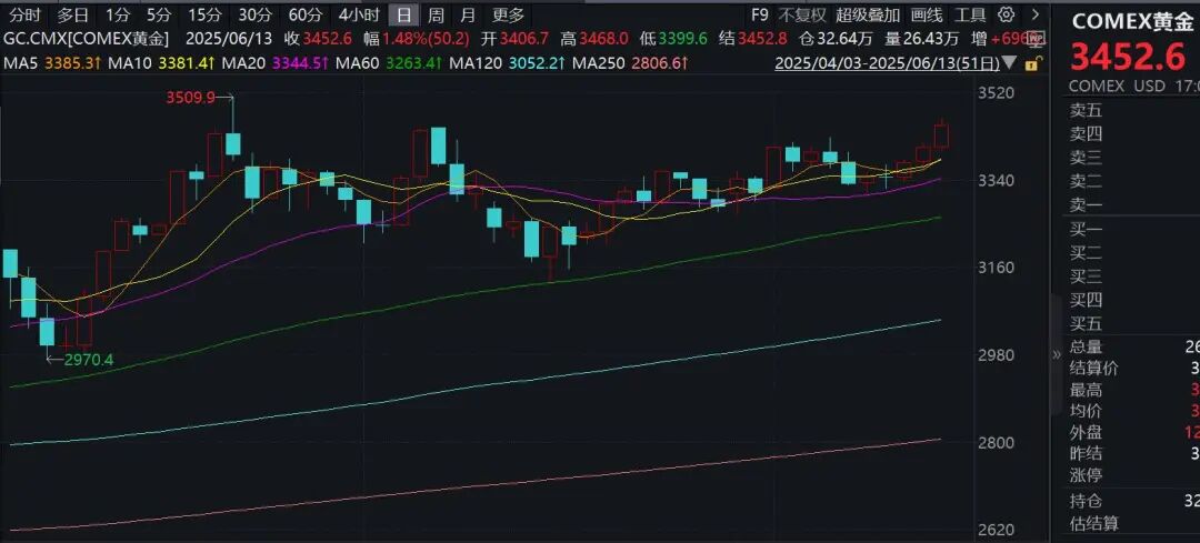 中东紧张局势加剧,国际油价飙升,金价大涨。