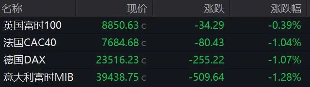 欧洲主要股指收盘下跌。