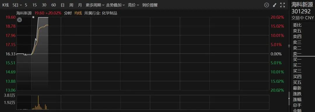 今日盘初固态电池概念快速拉升,海科新源20%涨停,诺德股份三连板,湘潭电化、丰元股份2股开盘后双双直线拉升涨停,海科新源、诺德股份、华盛锂电、芳源股份等跟涨。