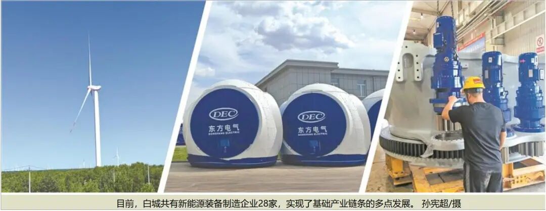 在大力发展风力发电的同时,白城市还根据自身资源禀赋,大力发展新能源装备制造业,以新能源装备制造基地建设为牵引,不断强龙头、补链条、聚集群。