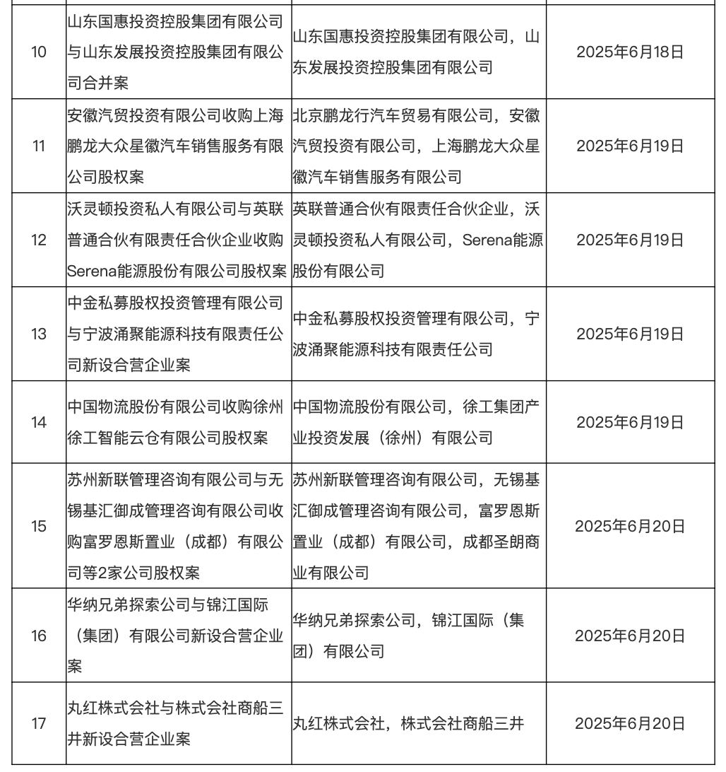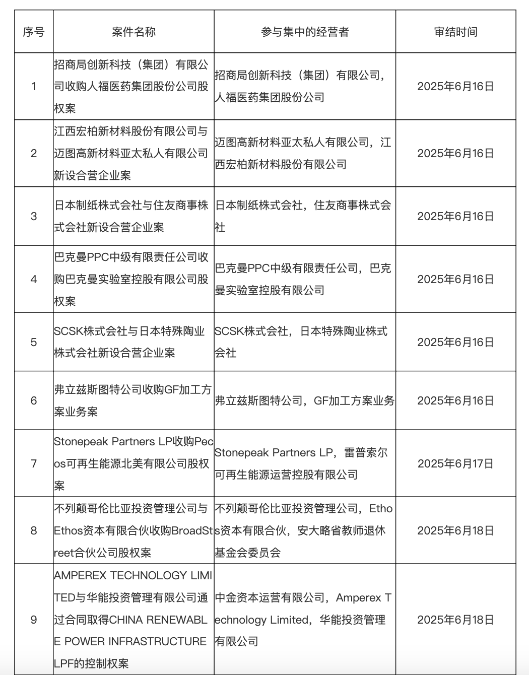 人民财讯7月1日电,市场监管总局发布2025年6月16日—6月22日无条件批准经营者集中案件列表,其中包括招商局创新科技(集团)有限公司收购人福医药集团股份公司股权案、华纳兄弟探索公司与锦江国际(集团)有限公司新设合营企业案等。