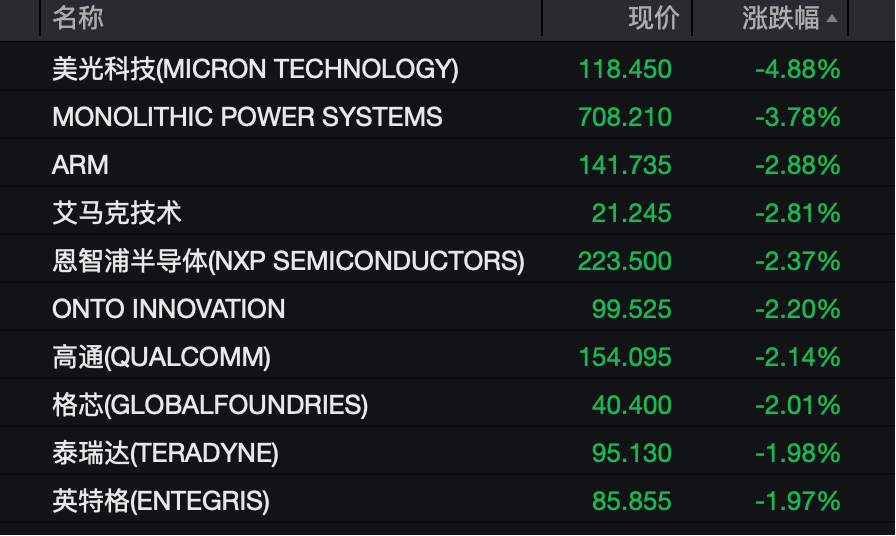 美股半导体股票集体下跌,费城半导体指数一度跌超2%。截至发稿,美光科技、ARM、高通等个股均跌超2%。