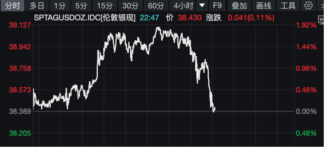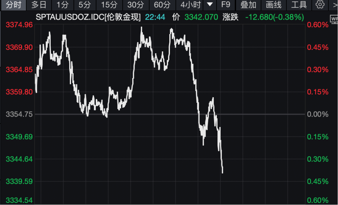 黄金、白银明显跳水。截至发稿,国际现货黄金报3342.07美元/盎司,日内短线跌超50美元,最新跌幅为0.38%。国际现货白银报38.43美元/盎司,涨幅为0.11%,此前一度涨近2%。