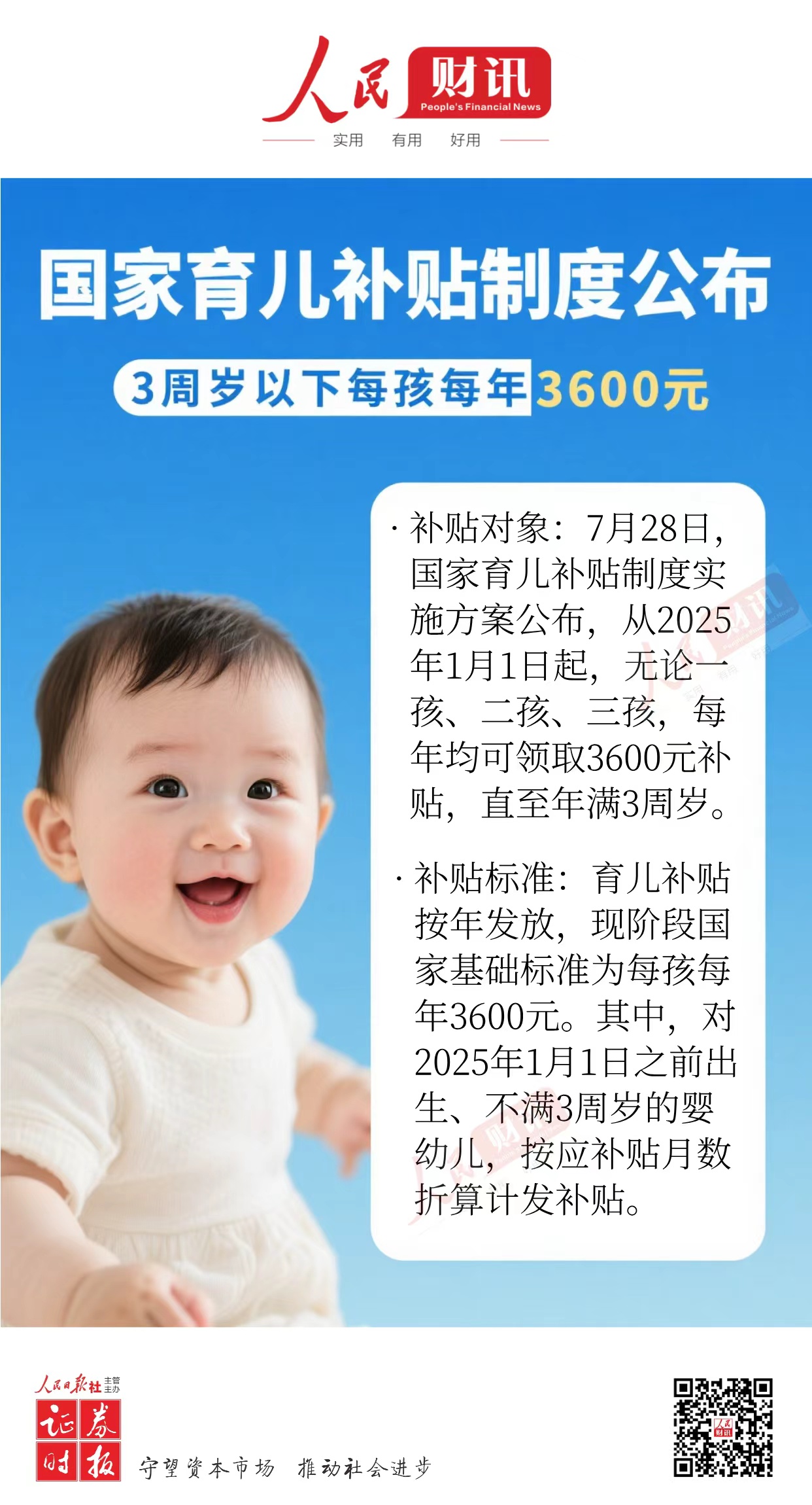 人民财讯7月28日电,国家育儿补贴制度实施方案7月28日公布。