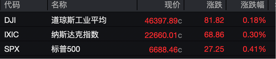 芯片股多数上涨,费城半导体指数涨0.87%,英伟达涨逾2%,市值突破4.5万亿美元,再创历史新高。此外,台积电、美光科技均涨超2%,意法半导体涨0.61%,微芯科技涨0.23%;英特尔跌逾2%。