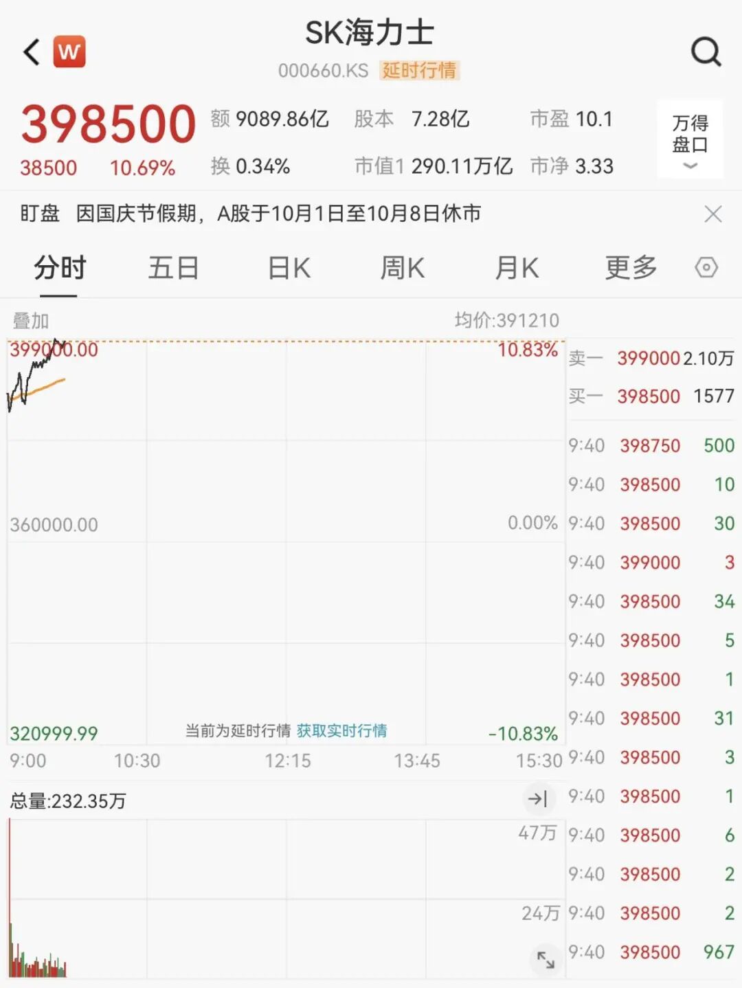 权重股方面,三星电子和SK海力士股价飙涨,三星股价涨超4%。