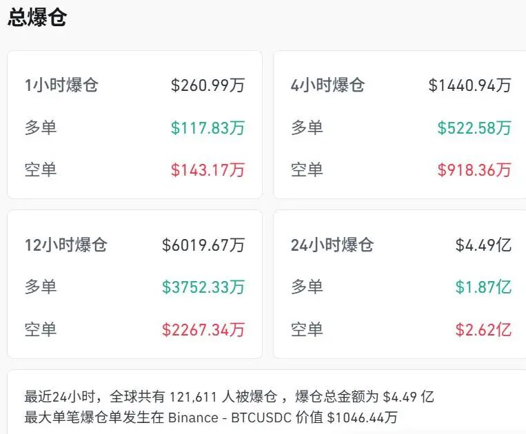 最近24小时,全球共有超12万人爆仓。