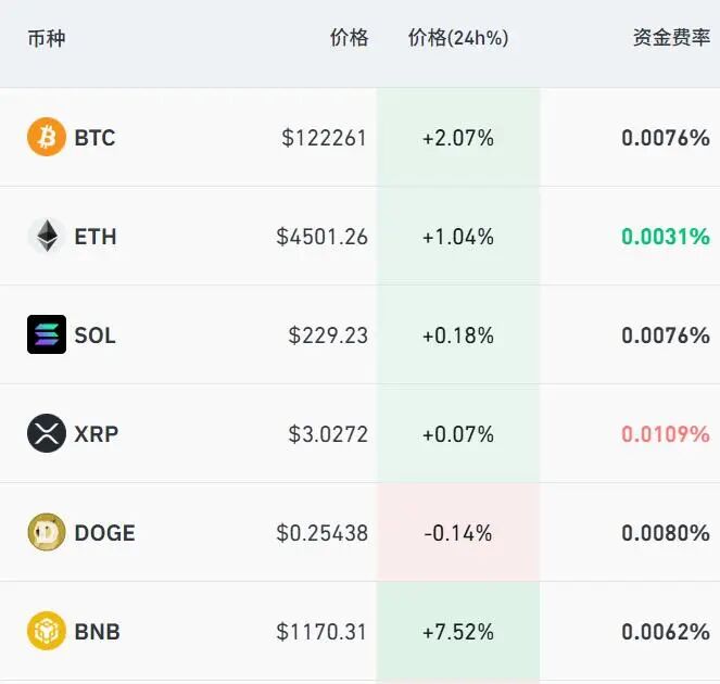 10月4日,加密货币普涨,比特币涨超2%,站上122200美元;以太坊上涨1%,站上4500美元。