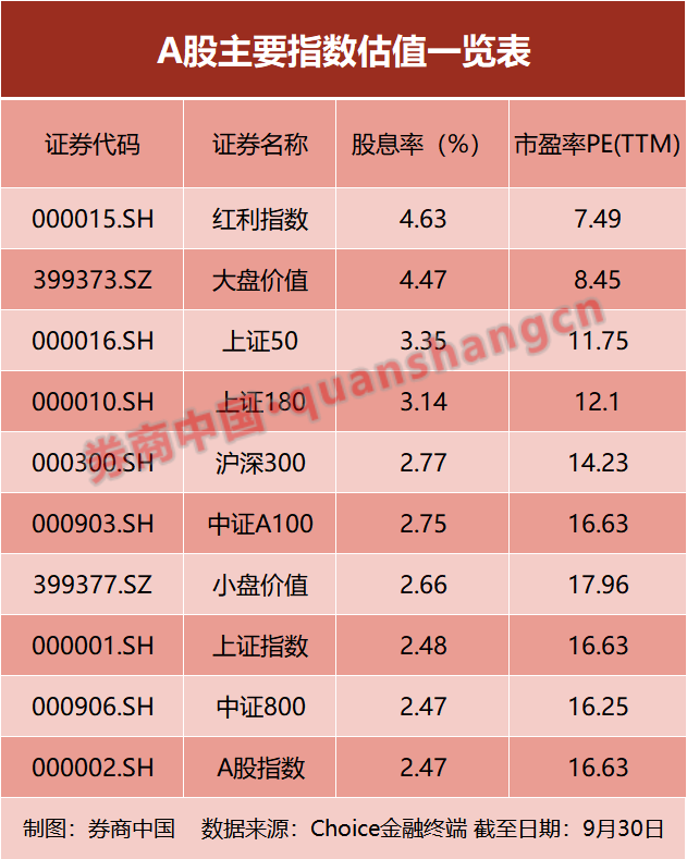 截至9月30日,上证指数的股息率为2.48%,对应的市盈率为16.6倍;恒生指数的股息率为2.24%,对应的市盈率为12.3倍。而道琼斯工业平均指数的股息率仅为0.56%,对应的市盈率为32倍;纳斯达克指数的股息率0.3%,对应的市盈率为44倍。巴菲特手持3000多亿美元的现金,某种程度上是美股市场整体高估的标志。