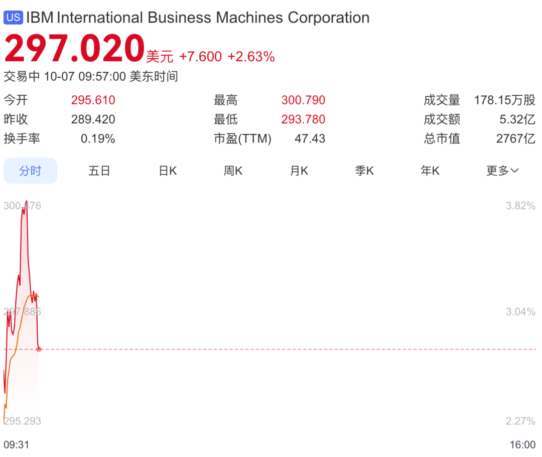IBM涨超2%,公司与Anthropic达成企业级人工智能软件合作协议。