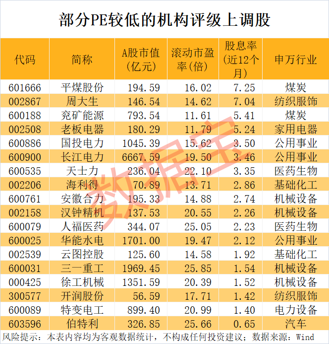 多只细分行业的龙头股入围。传统行业方面,包括水电龙头长江电力、华能水电,火电龙头国投电力,挖掘机龙头三一重工、徐工机械,煤炭龙头兖矿能源等名列其中。新兴产业方面,新能源汽车龙头北汽蓝谷、电解液龙头新宙邦等榜上有名。从估值水平来看,截至9月30日收盘,18只个股滚动市盈率(PE)低于30倍,其中6股滚动市盈率不到15倍,分别是兖矿能源、老板电器、海利得、云图控股、周大生、安徽合力。从股息率角度来看,截至9月30日收盘,股息率(近12个月)最高的是平煤股份,达到7.25%。