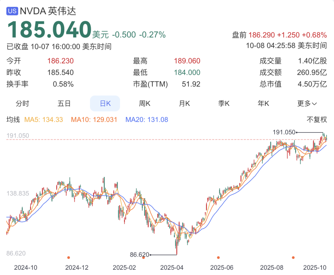 对于双方合作的目标,黄仁勋表示,这一合作将帮助两家公司满足不断增长的人工智能需求。截至美国东部时间10月7日收盘,英伟达股价报185.04美元,今年以来涨超30%。