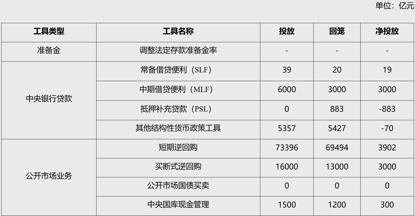 人民财讯10月10日电,央行发布9月中央银行各项工具流动性投放情况。其中,短期逆回购净投放3902亿元,买断式逆回购净投放3000亿元,公开市场国债买卖净投放0元,中期借贷便利(MLF)净投放3000亿元,抵押补充贷款(PSL)净回笼883亿元。