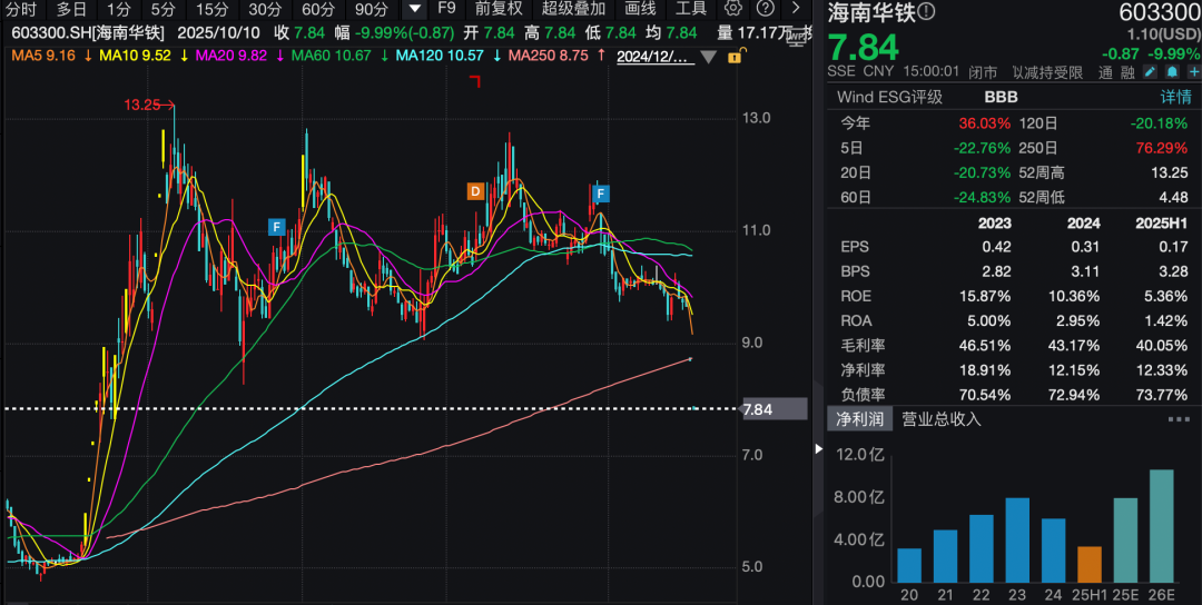 但是,海南国资的接盘,并没有给海南华铁的股价带来提振。2024年5—9月,公司股价跌跌不休,最低价一度跌至4.02元/股,较受让价下跌近40%。