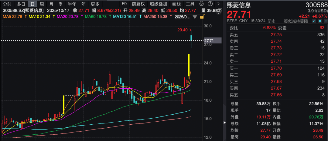 10月19日晚间,熙菱信息发布公告,近日,上市公司收到岳亚梅家属的通知,其收到阿拉山口市监察委员会签发的《解除留置通知书》,阿拉山口市监察委员会已解除对岳亚梅的留置措施。目前,熙菱信息生产经营情况正常,岳亚梅已能够正常履行公司董事、总经理职责。