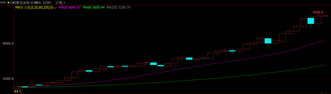 COMEX黄金期货涨3.82%,报4374.3美元/盎司;现货黄金涨2.48%,报4357.36美元/盎司;盘中均一度创历史新高。COMEX白银期货涨2.59%,报51.4美元/盎司。