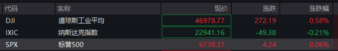 当地时间周二(10月21日),美股三大指数开盘涨跌不一。截至发稿,道指涨0.58%,纳指跌0.21%,标普500指数涨0.06%。
