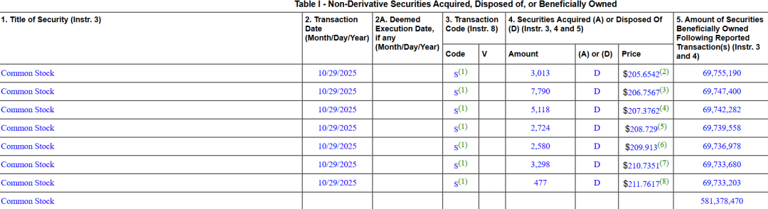 根据英伟达向SEC提交的文件显示,黄仁勋在10月29日单日减持2.5万股,减持完成后个人仍然持有英伟达股票6973万股。