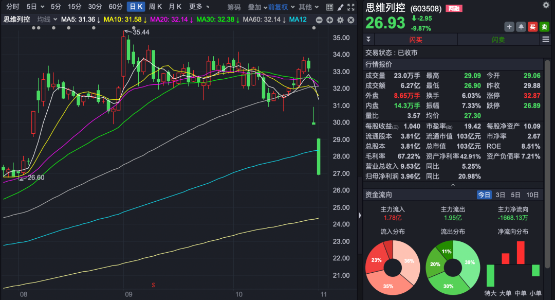 虽然今年前三季度业绩仍在增长,但是,思维列控近期的股价走势却颇为诡异。