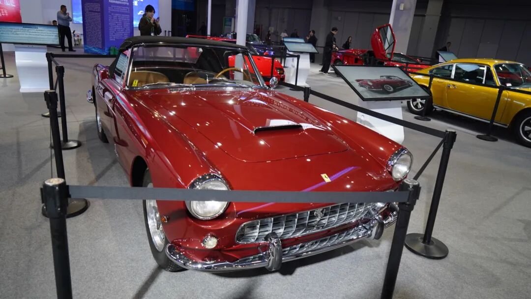 在展区的核心位置,三台法拉利车型构成了品牌的技术进化图谱。20世纪50年代末诞生的250 GT Cabriolet,以3.0升V12发动机输出的240马力,重新定义了豪华GT跑车的标准——它既保留赛道基因,又兼顾日常实用,全球仅200辆的产量更让其成为工艺精度的象征,为法拉利确立“高性能+奢华”的产品定位奠定了基础。
