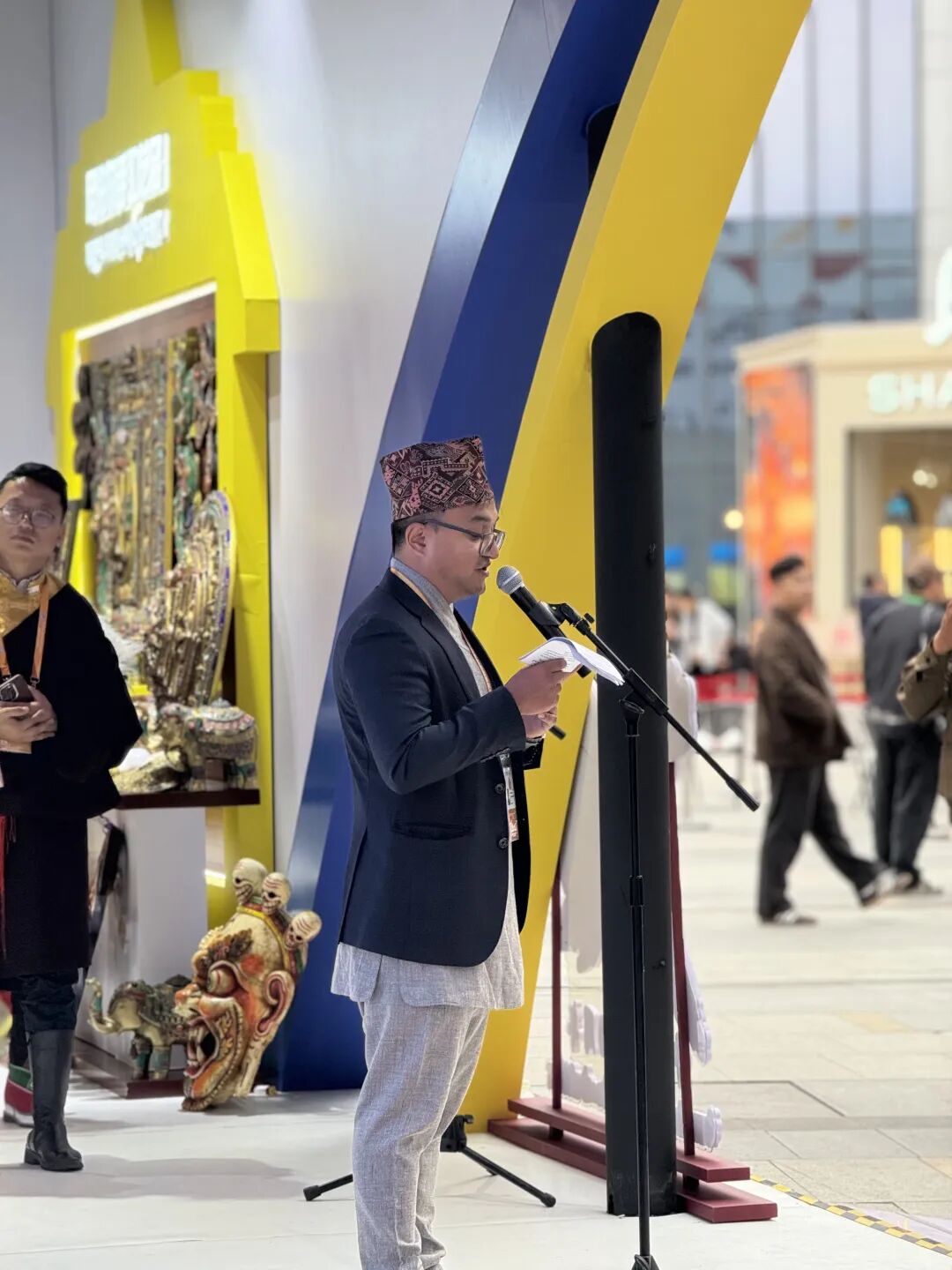 负责人次仁多杰向记者介绍,展馆内共设有“主舞台区”“拉萨好物展示区”“友城展示区”“拉萨南亚跨境电商产业园专区”及“拍照打卡区”等五大功能区。中尼双方共组织了13家企业、1个功能园区参展,携带百余件展品,展品涵盖了西藏特色农牧产品、手工艺品以及尼泊尔进口商品等领域。在展馆内,中国与尼泊尔的非遗传承者还与来宾积极互动,传播独特的文化体验。