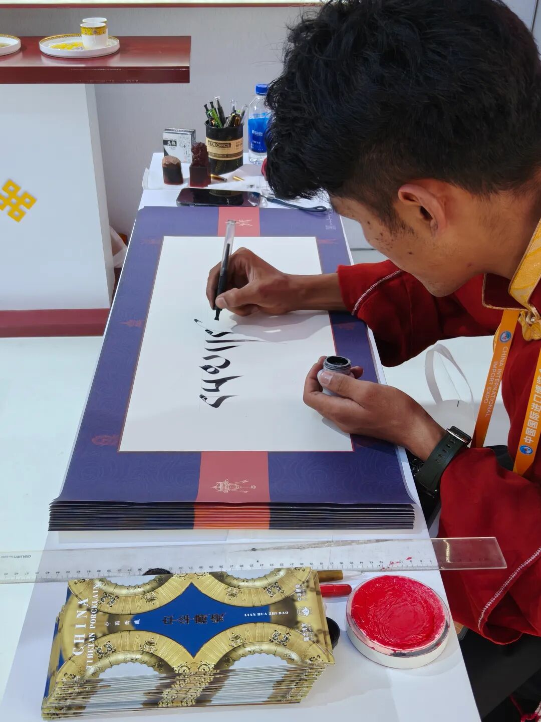 青年书法家现场演绎藏式书法
