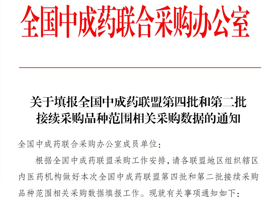 11月5日,一份名为《关于填报全国中成药联盟第四批和第二批接续采购品种范围相关采购数据的通知》(简称《通知》)的文件流出,多位业内专业人士证实了《通知》的真实性。不过,最终版本仍需等待官方发布。