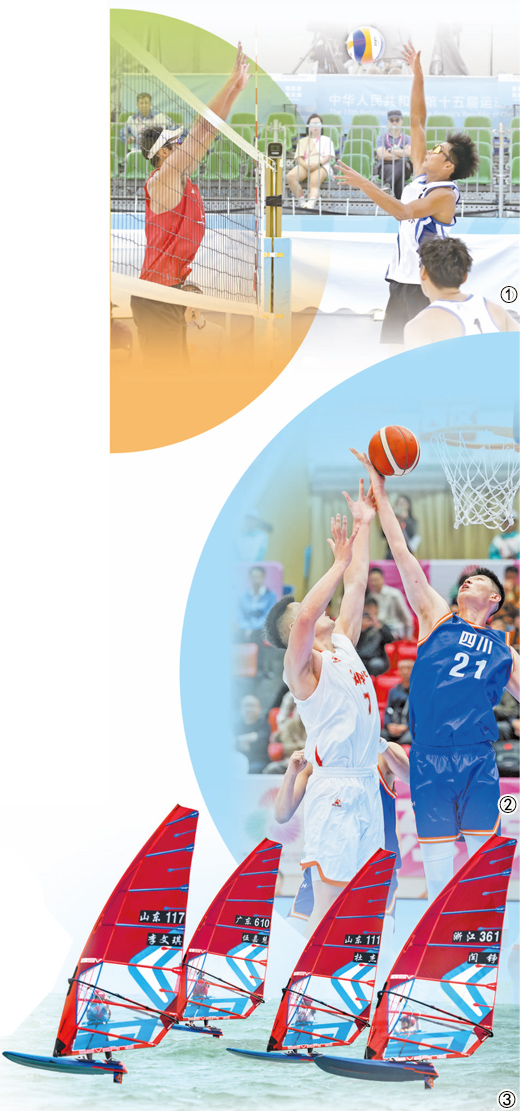图③:广东汕尾,运动员在十五运会帆船项目女子水翼帆板级比赛中。