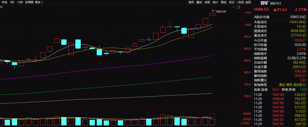 概念板块方面,锂矿概念板块大涨,板块盘中涨幅超过2%。芳源股份盘中“20cm”涨停,威领股份、大为股份盘中触及涨停。大中矿业、天华新能、盛新锂能等多股涨幅居前。