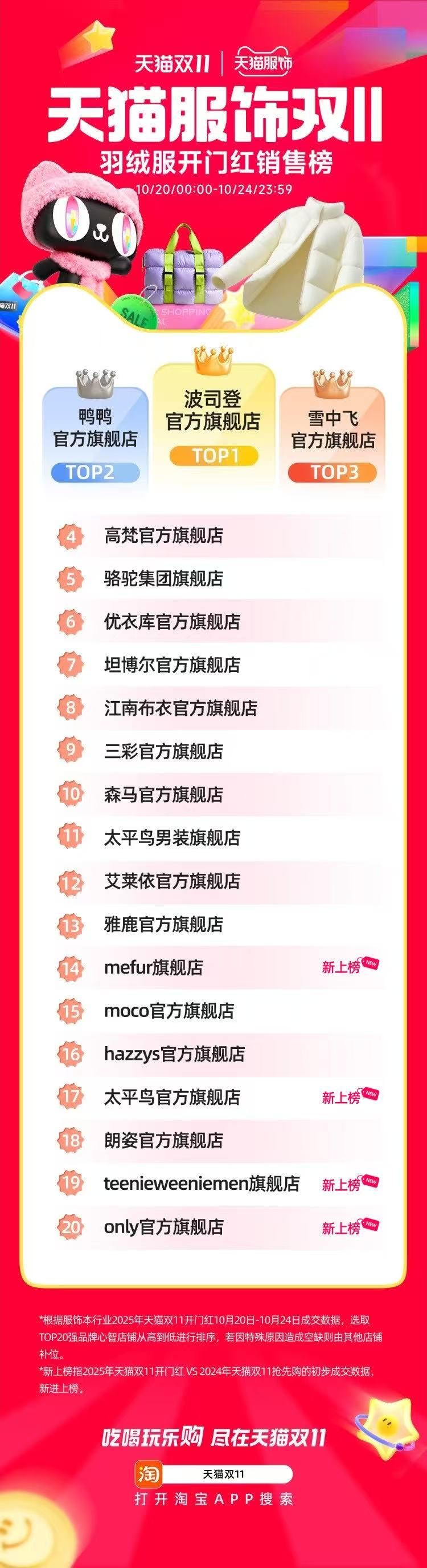 (根据2025年天猫公布的双11“开门红”阶段成交数据,高梵官方旗舰店的销量位列羽绒服销售榜第四)