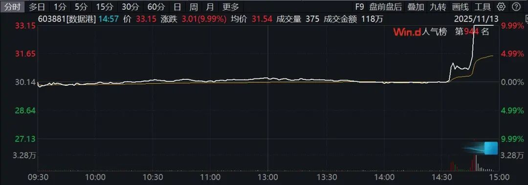 A股午后涨幅扩大,尾盘阿里云概念异动拉升,数据港直线涨停,润建股份、奥飞数据、创业黑马、杭钢股份、依米康等冲高。