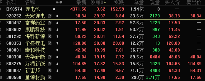 相关概念更是掀起涨停潮,富祥药业、华盛锂电、海科新源、泰和科技等个股均收获“20cm”涨停。