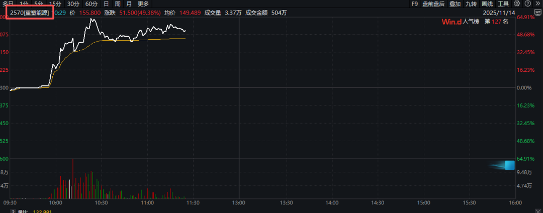 重塑能源大涨,盘中涨幅一度超过60%。资料显示,重塑能源成立于2015年9月,专注于氢能科技领域的技术研发及产品开发、氢能产业生态构建以及规模化商业应用推广,是以市场化为导向并具备全球化视野的领先氢能科技企业。