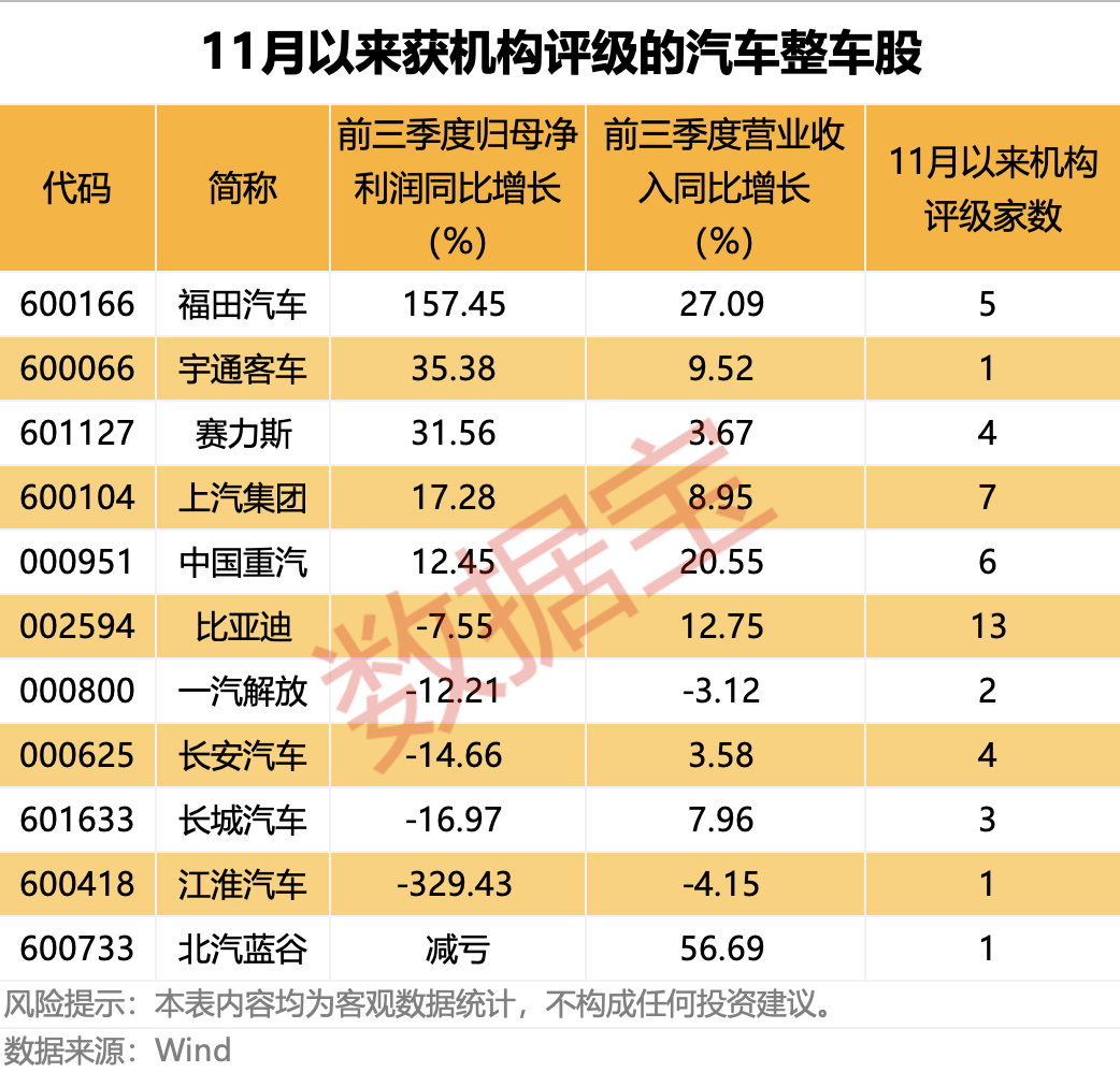 随着三季报披露结束,机构对业绩增长型车企的关注度持续提升。