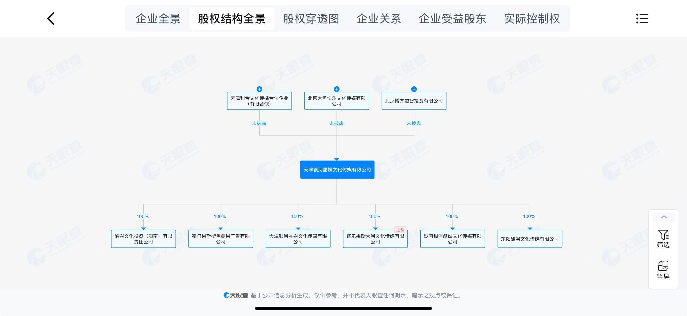 天眼查APP显示,天津银河酷娱文化传媒有限公司成立于2015年,法定代表人为吴晓珍,注册资本3760多万元;此前公司股东共有8家,目前还有三家股东,但持股比例未披露。