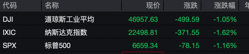 当地时间周五(11月14日)美股开盘,科技板块延续近期跌势,拖累美股大盘指数下跌。截至记者发稿,道指、纳指、标普500指数跌幅均超过1%,纳指更是大跌超1.6%。