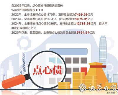 自2022年以来,点心债发行规模快速增长。Wind资讯数据显示,2022年全市场发行点心债1179只,发行总金额为7469.69亿元;2023年全市场发行点心债1484只,发行总金额为9675.31亿元;2024年全市场发行点心债2086只,发行总金额达12786.98亿元,首次年度发行规模破万亿元。2025年以来,截至目前,全市场点心债发行总金额达9794.54亿元。